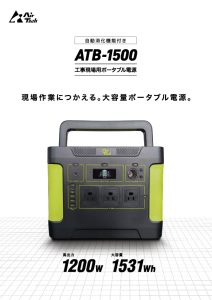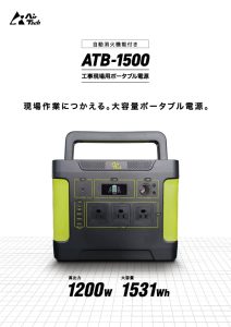 工事現場用ポータブル電源 ATB-1500 防塵・防水仕様の専用ハードケースに格納し、そのまま過酷な現場へ。粉塵、雨、衝撃など、すべてを想定したプロ仕様の装備で、安全かつ迅速な作業を可能に。さらに、万が一の落下や衝撃によ […]
